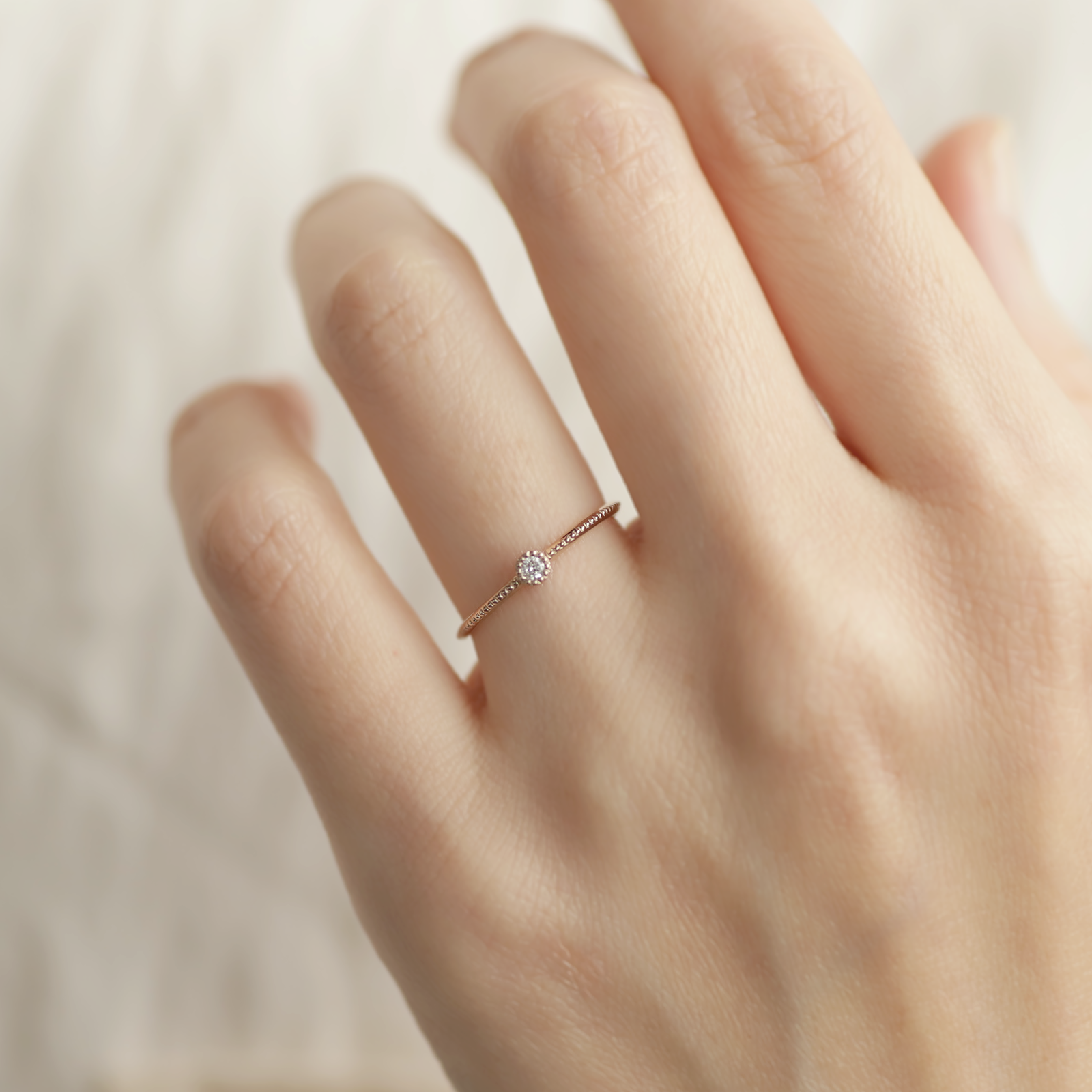 【新作】ANNIVERSARY 1粒ダイヤミル打ちリング